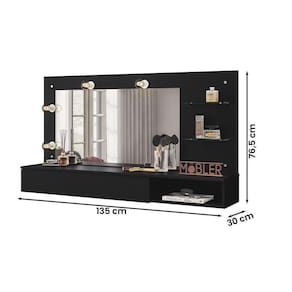 Fabricante: Mobler | Altura do Produto Montado: 76.5 | Largura do Produto Montado: 135 | Comprimento do Produto Montado: 30 | Altura do Produto Embalado: 6,3 | Largura do Produto Embalado: 60,2 | Comprimento do Produto Embalado: 146,5 | Peso do Produto Montado: 28.90 | Peso do Produto Embalado: 28,90 | Material para Filtro: MDP | Estado de Origem: SP | Descrição do Tamanho: 76,5 x 135 x 30 cm | Nome do Produto: Penteadeira Suspensa Lumiere | Garantia em Meses: 03 meses de garantia para defeitos de fabricação | Tonalidade: Multicolorido | Altura: 76,5 cm | Comprimento: 30 cm | Inclui Espelho: Sim | Requer montagem: Sim | Largura: 135 cm Cor: Preto Fosco