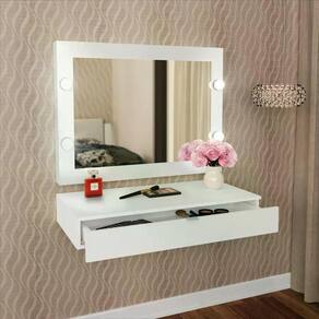 Penteadeira De Parede Camarim PE2004 / PE2006, é ideal para você que precisa de muita iluminação para fazer aquela maquiagem ou penteado perfeito, estrutura resistente em MDP de 15mm, pintura com acabamento em Uv (Brilho). Gaveta corrediças telescópicas que deslizam com mais suavidade, e suporta até 3 kg, puxador de alumínio escovado, este produto deverá ser fixado na parede, a altura minima ideal para fixar na parede é de 66,2 cm, móvel moderno e funcional, Moldura de espelho com 04 soquetes acoplados para colocação de lâmpadas (lâmpadas não inclusas), botão liga/desliga na lateral, espelho com 3mm de espessura, soquetes com fiação elétrica para montagem. Indicamos a compra da lâmpada de LED na temperatura quente (luz amarela) na intensidade de 4Wats para melhor iluminação ao maquiar-se. Este móvel chegará em sua casa separado em 02 volumes.