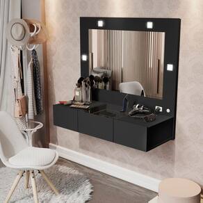 Penteadeira Camarim Suspensa Sofia Preto Acetinado - Rede Móveis