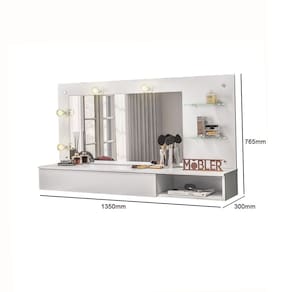 Características: Estrutura em MDP Pintura UV 01 Gaveta com corrediças telescópicas 02 Prateleiras de vidro 04 Soquetes para lâmpadas Pinos cromados decorativos Possui Espelho *NÃO ACOMPANHA LÂMPADAS*