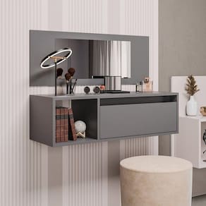 A Penteadeira Camarim Suspensa Mayumi é a escolha perfeita para quem busca funcionalidade e elegância. Ideal para otimizar qualquer espaço, este móvel contém uma largura de 90 cm, oferecendo um espaço amplo para suas necessidades de beleza. Produzida em MDP de alta qualidade, garante durabilidade e resistência. O revestimento em Melamina BP proporciona uma superfície lisa, fácil de limpar. O design suspenso confere um toque contemporâneo ao ambiente, ideal para quem busca uma decoração minimalista e funcional. Acompanha uma espelheira ampla, perfeita para suas rotinas de maquiagem e cuidados pessoais, garantindo praticidade e estilo. Conta com 1 porta e 1 nicho na lateral, oferecendo espaço suficiente para organizar seus itens essenciais. Possui uma estrutura robusta que suporta até 20 kg distribuídos, permitindo que você organize seus itens de maneira segura e prática. A montagem suspensa otimiza o espaço disponível, sendo ideal para ambientes menores já o tom Grafite e o design minimalista permitem que esta penteadeira se integre facilmente a qualquer estilo de decoração. No Quarto ela é ideal para rotinas de maquiagem e cuidados pessoais, no Closet ela é essencial para manter seus itens de beleza sempre à mão, no Banheiro é perfeita para manter seus cosméticos e acessórios organizados de maneira prática e estilosa. Gostou? Não perca a oportunidade de transformar seu ambiente e facilitar sua rotina diária. Aproveite!