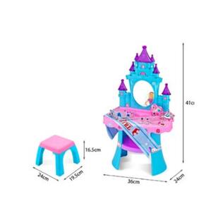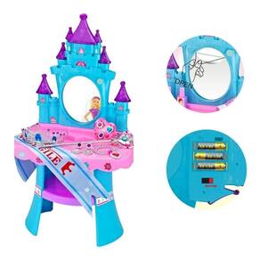 A Penteadeira Musical com banquinho Baby Style tem um lindo formato de Castelo digno de uma Princesa! Um camarim próprio com mais de 30 acessórios e jóias, e claro o mastro e uma coroa com detalhes apaixonantes para ficar ainda mais linda. A penteadeira tem um espelho perfeito para as princesas se admirarem. Suas cores são vibrantes e harmonizam entre si. Tudo pensado para o faz de conta estar à altura desta princesa.