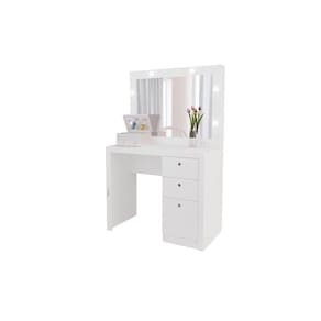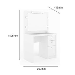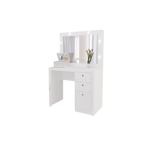 Penteadeira para quarto Tecnomobili PE2010, possui 3 gavetas, sendo uma maior, incl o espelho, bocais para 6 lâmpadas, acompanha chicote elétrico, lâmpadas por conta do consumidor, material em MDP, acabamento em pintura UV.