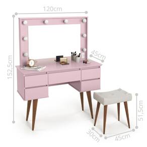 ALTURA DO PRODUTO (CM): 152,5 | ALTURA DO PRODUTO COM EMBALAGEM (CM): 24 | COMPRIMENTO DO PRODUTO (CM): 45 | COMPRIMENTO PRODUTO COM EMBALAGEM (CM): 71 | CONTEÚDO DA EMBALAGEM: 1 PENTEADEIRA 1 BANCO | CORES DO PRODUTO (FILTRO DE CORES): ROSA | COR PREDOMINANTE: ROSA | DESCRIÇÃO DO TAMANHO: 152,5X120X45 | ESTADO DE ORIGEM: SP | INSTRUÇÕES/CUIDADOS: Limpar com flanela ou pano macio seco, não utilizar produtos abrasivos | LARGURA DO PRODUTO (CM): 120 | LARGURA PRODUTO COM EMBALAGEM (CM): 122 | MATERIAL PARA FILTRO: MDF | MATERIAL PRINCIPAL: MDF | PESO DO PRODUTO (KG): 43,31 | PESO PRODUTO COM EMBALAGEM (KG): 52,2 | POSSUI BANQUETA: SIM | POSSUI GAVETAS: SIM | POSSUI ILUMINAÇÃO: SIM | PRODUTO: PENTEADEIRA COM BANCO | PRODUTO PRECISA DE MONTAGEM?: SIM | QUANTIDADES DE CAIXAS DE EMBALAGEM: 2