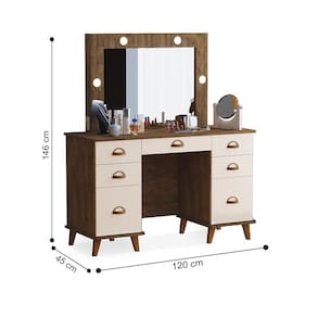 DESCRIÇÃO DO TAMANHO: 146 x 120 x 45 cm | PRODUTO PRECISA DE MONTAGEM?: Sim, a montagem é simples mas sugerimos a contratação do nosso serviço de montagem (para os CEPs em que o serviço está disponível) ou de algum experiente de sua preferência | ALTURA DO PRODUTO (CM): 146 | MATERIAL PRINCIPAL: mdf | CONTEÚDO DA EMBALAGEM: 1 penteadeira | CORES DO PRODUTO (FILTRO DE CORES): marrom | COR PREDOMINANTE: malbec e off white | POSSUI BANQUETA: não | ESTADO DE ORIGEM: sp | COMPRIMENTO PRODUTO COM EMBALAGEM (CM): 137 | COMPRIMENTO DO PRODUTO (CM): 45 | ALTURA DO PRODUTO COM EMBALAGEM (CM): 27 | MATERIAL PARA FILTRO: mdf | PRODUTO: penteadeira | POSSUI GAVETAS: sim, 7 | PESO DO PRODUTO (KG): 60.5 | MARCA: luapa | POSSUI ILUMINAÇÃO: sim | LARGURA PRODUTO COM EMBALAGEM (CM): 69.5 | INSTRUÇÕES/CUIDADOS: Limpar com pano macio e seco, não utilizar produtos abrasivos. | PESO PRODUTO COM EMBALAGEM (KG): 60.5 | LARGURA DO PRODUTO (CM): 120