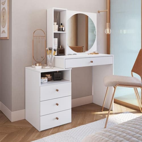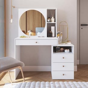 Transforme seu espaço de beleza com a penteadeira suspensa *prática* e elegante, produzida em MDP de alta qualidade com acabamento fosco durável. Equipada com um espelho redondo central que traz sofisticação ao ambiente, ela é perfeita para organizar todos os seus produtos de beleza e acessórios de forma prática e visualmente atraente. Com 4 gavetas espaçosas e 3 nichos versáteis, você terá espaço de sobra para armazenar maquiagens, perfumes e outros itens essenciais do dia a dia, mantendo tudo sempre à mão e bem organizado. A estrutura suspensa traz um toque de modernidade e otimiza o espaço, sendo ideal para quartos ou closets de qualquer tamanho. Além de funcional, esta espelheira agrega estilo e valor ao ambiente, tornando sua rotina de cuidados ainda mais agradável. Este móvel chegará em sua casa separado em 01 Volume.