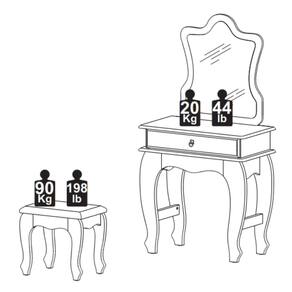 A Penteadeira com Espelho 1 Gaveta Baby JB 7200 JB M?veis , ? ideal para manter acess?rios, maquiagens, perfumes e outros itens bem organizados, deixando o quarto mais funcional e elegante. Seu design retr? acrescenta charme e estilo ao ambiente, enquanto sua estrutura resistente suporta at? 20 kg na penteadeira e 90 kg na banqueta.