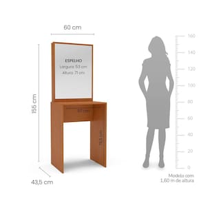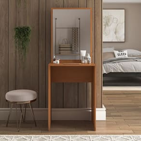A Penteadeira Porto da Politorno Móveis é a escolha ideal para quem busca praticidade, elegância e excelente custo-benefício em um só produto. Com dimensões compactas — 60 cm de largura, 43,5 cm de profundidade e 155 cm de altura — ela se encaixa perfeitamente em espaços pequenos, sem abrir mão do estilo. Seu design minimalista e sofisticado valoriza qualquer ambiente, tornando o momento de autocuidado ainda mais especial. Produzida em MDP e com acabamento em FF , oferece durabilidade, fácil limpeza e visual moderno. Ter uma penteadeira como essa é mais do que um detalhe na decoração: é um convite diário ao cuidado com a autoestima e bem-estar. Acompanha Banqueta: Não Altura do Espelho: 71 cm Ambiente Principal: Quarto codigo_ean: 7900288187673 Complexidade da Montagem: Baixa: pode ser montado por uma pessoa sozinha Cor: Freijó Cor do Produto: Freijó Cor Interna: Freijó Escala de Brilho: Semi-Fosco Espessura do Espelho: 3 mm Fita Integrada: Sim Formato do Espelho: Retangular Itens Inclusos: 1 Penteadeira, Kit Ferragem, Manual de Montagem e Termo de Garantia Largura do Espelho: 53 cm Linha ou Coleção: Porto Manual de Montagem e Instalação: https://product-hub-prd.madeiramadeira.com.br/815751315/documents/c9021b2a-e005-4c27-8628-aa7c5ca2c374304913862241751566292145.pdf Marca: Politorno Material Principal: MDP Necessita Montagem: Sim Origem do Produto: Nacional Peso: 18,54 kg Possui iluminação: Não Possui Pés: Não Possui Porta Objetos: Não Possui Portas: Não Possui Prateleiras: Não Quantidade de Espelho: 01 Recomendações de Uso, Manutenção e Limpeza: Utilize um pano macio umedecido com água e sabão neutro, seguido de pano seco. Não utilize produtos químicos ou abrasivos para limpeza, pois estes danificam o revestimento do móvel. Sapatas Niveladoras: Não Sistema de Montagem: Cavilha, Parafuso, Minifix e prego. Suporta Até (kg): 10 kg Tipo de Fixação do Espelho: Fita Dupla Face Marca: Não Informado