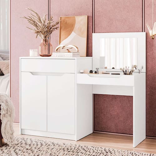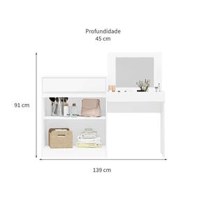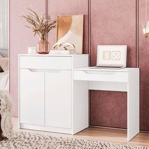 que tal a penteadeira trend? sempre bom ter aquele cantinho preparado para se arrumar, né? a penteadeira trend, além de ser funcional e ter 1 gaveta e 2 portas, tem também um design clean que te ajudará a deixar seu espaço bonito e acolhedor - seja no quarto ou no closet. pensada para facilitar o dia a dia, a peça tem corrediças telescópicas, que abrem com mais suavidade e têm mais amplitude, e ainda conta com espelho, um grande aliado nesse momento de autocuidado. ah, notou que o tampo é do tipo basculante? então você pode fechar quando não estiver usando e deixar seu cantinho ainda mais clean. Marca: Modern