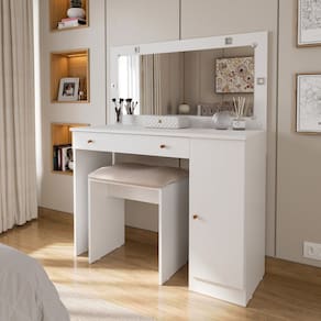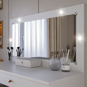 A Penteadeira Estrela com LED é o toque perfeito de elegância e funcionalidade para o seu quarto. Seu design moderno em acabamento branco transmite leveza e sofisticação, combinando com diferentes estilos de decoração. O amplo espelho com iluminação em LED garante uma visão clara para o momento da maquiagem, enquanto as gavetas e compartimentos oferecem praticidade para organizar cosméticos e acessórios. Acompanha um banco acolchoado, proporcionando conforto e charme ao seu espaço. Um móvel completo que une beleza, conforto e praticidade no seu dia a dia. Acabamento da Gaveta: Pintura UV Acabamento da Porta: Pintura UV Acompanha Banqueta: Não Acompanha Lâmpada: 04 Altura do Espelho: 40 cm Ambiente Principal: Quarto codigo_ean: 7900288276209 Complexidade da Montagem: Alta: deve ser montado por um montador especializado Cor: Branco Cor do Produto: Branco Cor Flex: NÃO Cor Interna: Branco Escala de Brilho: Brilhante Escala de Brilho da Gaveta: Brilhante Escala de Brilho da Porta: Brilhante Espessura do Espelho: 3 mm Espessura do Vidro: 3 mm Formato do Espelho: RETANGULAR Gaveta com Chave: Não Itens Inclusos: 1 Penteadeira, Kit Ferragens e Manual de Montagem Largura do Espelho: 93,5 cm Linha ou Coleção: Estrela Manual de Montagem e Instalação: https://product-hub-prd.madeiramadeira.com.br/212664476/documents/f0055f0c-7ba7-43a6-8c68-4c190126301d32944788671761593253429.pdf Marca: J&A Móveis Material da Gaveta: MDF/MDP Material da Porta: MDP Material do Puxador da Gaveta: Plástico Material do Puxador da Porta: Plástico Material Principal: MDP Necessita Montagem: Sim Origem do Produto: Nacional Peso: 42 kg Peso Máximo por Gaveta: 10 kg Possui iluminação: Sim Possui Moldura: Não Possui Pés: Não Possui Porta Objetos: Não Possui Portas: 01 Possui Prateleiras: Não Possui Vidro: Sim Quantidade de Espelho: 01 Recomendações de Uso, Manutenção e Limpeza: LIMPEZA COM PANO SECO Sapatas Niveladoras: Não Sistema de Montagem: PARAFUSOS, BUCHA, PORCA Suporta Até (kg): 10 kg Tampo Basculante: Não Tipo de Corrediça da Gaveta: Metálica Telescópica Tipo de Dobradiça/Corrediça da Porta: Metálica Tipo de Fixação do Espelho: Molduras Tipo de Porta: Bater Tipo de Puxador da Gaveta: Externo Tipo de Puxador da Porta: Externo
