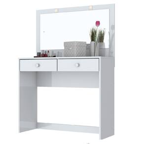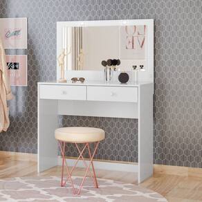 A Penteadeira Daila foi desenvolvida pensando nos amantes do auto cuidado que dedicam momentos de qualidade para si e para quem amam. Essa penteadeira possui muito mais do que beleza, tem 2 gavetas espacosas com o sistema de corredicas metalicas suavizando a abertura, um espelho grande com 2 luzes de LED na parte superior deixando a penteadeira mais iluminada e puxadores em ABS. Voce vai conseguir organizar seus produtos de cuidados com a pele, cuidados com o corpo, maquiagens, perfumes e escolher aquela roupa para qualquer evento. Ela pode ser montada em qualquer ambiente como quartos, closets e estudios. Nada melhor do que ter um produto que ira agregar na sua vida, facilitar no seu dia a dia, trazer muita sofisticacao e modernidade para o ambiente.