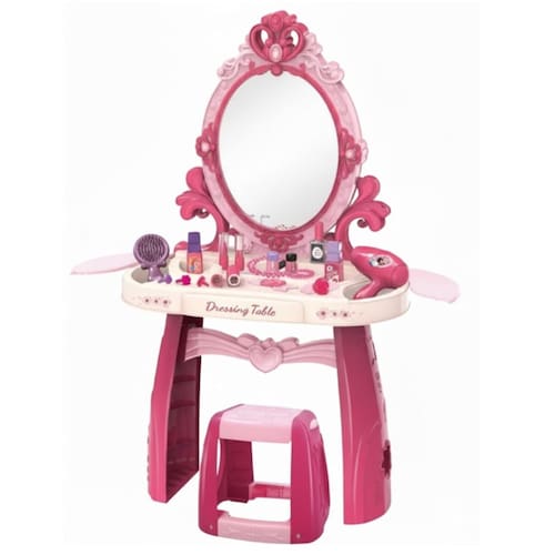 Esta é uma encantadora penteadeira de brinquedo, perfeita para pequenas princesas. Ela vem com um espelho grande e ornamentado, e um banquinho que combina. Além disso o conjunto vem com vários acessórios de beleza de brinquedo, como um secador, batons, joias e um pente, que permitem que as crianças se divirtam e usem a imaginação para criar diferentes penteados e visuais.