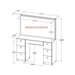 - Penteadeira com 1 espelho incluso.