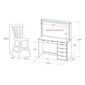 - Medida da Cadeira (AxLxP): 86,5 x 41,5 x 40 cm
