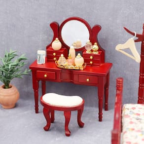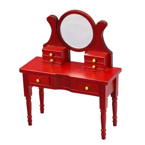Tamanho: Comprimento 9,3 cm Largura 3,7 cm Altura 11,8 cm Material: madeira compensada Peso: 80 g Design encantador de penteadeira: esta penteadeira em miniatura apresenta uma elegante cor de madeira vermelha com um espelho redondo combinando e várias gavetas, perfeita para o ambiente de seu quarto de casa de bonecas. Construção em madeira de qualidade: feita de madeira compensada de alta qualidade, esta peça de mobiliário é durável e finamente trabalhada, oferecendo uma adição realista e resistente à sua mini casa. Compatibilidade na escala 1:12: ideal para casas de bonecas na escala 1:12, esta penteadeira foi projetada para complementar outros acessórios em miniatura, proporcionando uma aparência coesa em seus quartos de casa de bonecas. Incentiva a brincadeira de fingir: ótima para incentivar a criatividade e o jogo criativo, esta penteadeira em miniatura permite que crianças e colecionadores criem e personalizem as configurações da casa dos seus sonhos. Aviso de segurança: Para brinquedos que não sejam infantis, tenha cuidado para evitar ingestão acidental ou ferimentos em crianças; este produto é apenas um modelo de brinquedo, não para pessoas reais; sugestões de adaptação: casa de bebê e boneca em escala 1/12.
