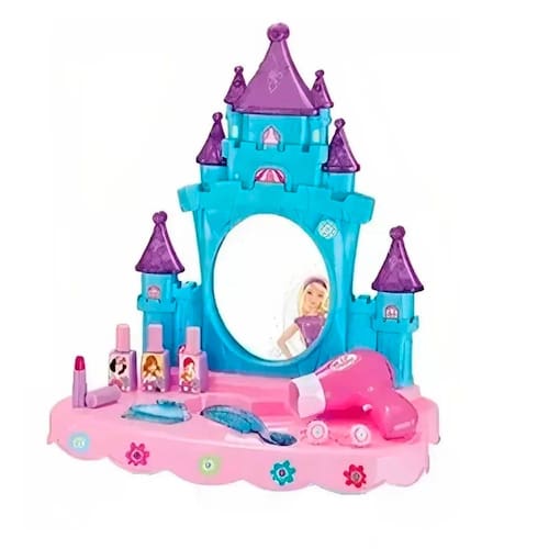 A Penteadeira Castelo Mágica é um brinquedo encantador projetado para estimular a imaginação e o jogo criativo das crianças. Ela é projetada no estilo de um castelo mágico, com detalhes encantadores, como torres, arcos e elementos decorativos que evocam um mundo de fantasia e imaginação.
