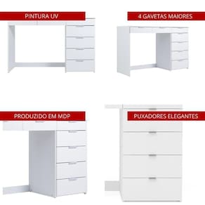 Penteadeira Escrivaninha 7 Gavetas 120 Cm Pe90 Branco Dtall Branco