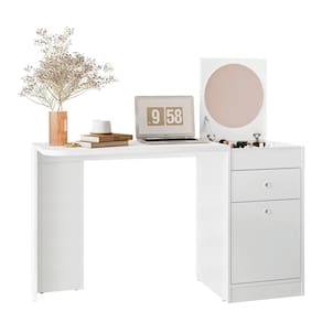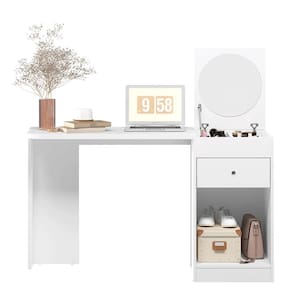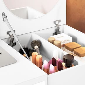 A Penteadeira Escrivaninha Desejo é a união perfeita entre funcionalidade e design. Com estrutura em MDP e pintura UV, oferece durabilidade e um acabamento de alta qualidade. Conta com 2 portas, sendo uma basculante com pistão a gás, além de 1 gaveta com corrediças telescópicas para organização prática. O tampo de 25 mm com canto arredondado proporciona um toque de elegância e segurança. O espelho redondo incluso ( 0,35m) completa o conjunto, tornando este móvel ideal tanto para suas rotinas de beleza quanto para uso como escrivaninha.
