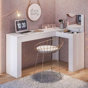 Mais do que uma penteadeira com espelho, a Jade também pode ser usada como mesa para , perfeita para estudos ou home office.