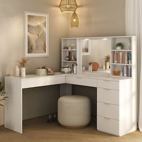 Transforme sua rotina com a Penteadeira Escrivaninha Foscarini, criada para unir beleza, funcionalidade e sofisticação. Com design moderno, ela conta com espelho elegante e kit 2 lâmpadas de LED, que oferecem iluminação clara, economia de energia e praticidade no dia a dia. São 5 gavetas espaçosas com corrediças telescópicas, que garantem abertura total e deslizamento suave, além de nichos abertos ideais para expor perfumes, livros, maquiagens ou objetos decorativos. Os puxadores em alumínio trazem um toque de requinte, enquanto o acabamento premium assegura resistência e durabilidade. Estrutura 100% BP, acabamento premium, fácil de limpar e de montar, é o móvel perfeito para deixar seu ambiente mais organizado e funcional. Estilo minimalista que valoriza seu ambiente. Acabamento da Gaveta: BP Acabamento da Prateleira: BP Acompanha Banqueta: Não Acompanha Lâmpada: 02 Altura do Espelho: 54,5 cm Ambiente Principal: Quarto codigo_ean: 7900288249753 Complexidade da Montagem: Média: pode ser montado por mais de uma pessoa e/ou necessite de maior conhecimento para montagem Cor: Branco Cor do Produto: Branco Cor Interna: Branco Escala de Brilho: Fosco Escala de Brilho da Gaveta: Fosco Escala de Brilho da Prateleira: Fosco Espessura do Espelho: 3 mm Fita Integrada: Sim Formato do Espelho: retangular Gaveta com Chave: Não Itens Inclusos: 1 Penteadeira, Kit Ferragens e Manual de Montagem Largura do Espelho: 64 cm Manual de Montagem e Instalação: https://cdn2.madeiramadeira.com.br/atributo/moveis-foscarini/3245784-4663-17591546138245.pdf Marca: Foscarini Material da Gaveta: MDP Material da Prateleira: MDP Material do Puxador da Gaveta: Alumínio Material Principal: MDP Necessita Montagem: Sim Origem do Produto: Nacional Peso: 74 kg Peso Máximo por Gaveta: 10 kg Peso Máximo por Prateleira: 5 kg Possui iluminação: Sim Possui Moldura: Não Possui Pés: Não Possui Porta Objetos: Sim Possui Portas: Não Possui Prateleiras: 04 Possui Vidro: Não Quantidade de Espelho: 01 Recomendações de Uso, Manutenção e Limpeza: Limpar com flanela ou pano macio seco, não utilizar produtos abrasivos, desengordurantes, álcool ou solvente. Não expor o produto diretamente à luz solar e à umidade. Sapatas Niveladoras: Não Sistema de Montagem: Fácil, rápido e descomplicado, parafusos, minifix e cavilhas. Suporta Até (kg): 10 kg Tampo Basculante: Não Tipo de Corrediça da Gaveta: Metálica Telescópica Tipo de Fixação do Espelho: Fita Dupla Face Tipo de Lâmpada: LED Tipo de Puxador da Gaveta: Externo