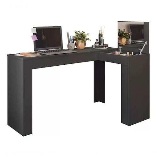 A Penteadeira Star Plus, trata-se de um produto com destaques versáteis, que proporciona um estilo ideal para se preparar para as ocasiões mais especiais, unindo design moderno e minimalista à utilidade do dia a dia. Estrutura em MDP, contando com pintura em acabamento MOB PRINT (Fosco). Composta por nichos organizadores interno, 01 tampo basculante com pistão à gás e dobradiças metálicas, e painel com espelho. Suporta até 30 kg distribuídos. Este móvel chegará em sua casa separado em 01 volume.