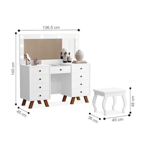 Essa Penteadeira conta com um design elegante e clássico, somando na decoração de seu quarto ou closet, com bastante espaço para organização pessoal. Conta com um largo espelho, gavetas laterais e uma gaveta central.