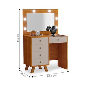Essa Penteadeira conta com um design clássico e compacto, mas ainda assim moderno, somando na decoração de seu quarto ou closet, sendo o espaço perfeito para organização pessoal. Conta com um espelho com quadro iluminado por LED e gavetas laterais.