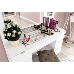 Penteadeira França c/ 6 Gavetas e Espelho Branco - Politorno