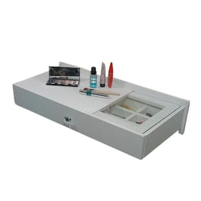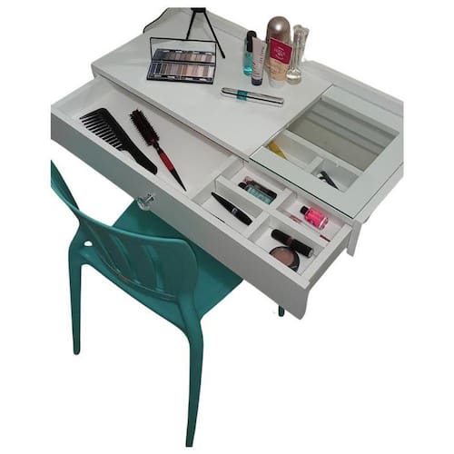 Multiuso Penteadeira / Escrivaninha / Mesa de estudos Gaveta Suspensa Penélope Premium foi desenvolvida com material de primeira qualidade, além de pensar na comodidade do dia a dia, a Penteadeira Gaveta Penélope Premium vai auxiliar na organização da sua maquiagem, ela possui uma gaveta extensa com 67 cm de largura possui corrediças telescópicas reforçadas, fornecendo maior aproveitamento do espaço da gaveta e possibilitando um deslizamento suave, firme e silencioso, 23 cm da largura desse tampo é composto de vidro temperado onde localiza-se o organizador / divisória de maquiagem, essa divisória pode ser removível e desmontável se desejar , nunca foi tão fácil e prático organizar e localizar sua MAKE Além disso, esse móvel se torna multifuncional, podendo ser utilizado como escrivaninha e mesa de estudo, pois seu tampo é reforçado, produzido com material 100% MDF.Esse móvel charmoso e elegante vai trazer mais beleza e funcionalidade para decoração do seu quarto. O produto é entregue montado, fácil de instalarProduto: 1 Gaveta multiuso com vidro, organizador/divisória, puxador cristal e um par de corrediças telescópicas reforçadas.Medidas:67 cm de largura medida total 33 cm de profundidade12 cm de altura OBS: pode haver pequena variação nas medidas do produto Inclui:Puxador estilo cristal fabricado em acrílico Tampo de vidro 23 cm da largura do tampo Parafusos e buchas para sustentaçãoUm par de corrediças telescópicas reforçadasNão inclui espelho. Marca: Marcenaria Sales & Alves