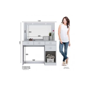 Penteadeira Chanel 1 Porta e 4 Gavetas c/ Espelho Branco - Henn Marca: HENN