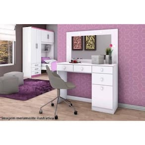 Penteadeira Infantil Chanel C/ 1 Porta E 4 Gavetas C/ Espelho Branco - Henn