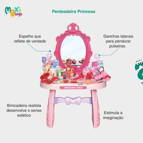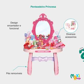 Penteadeira Bancada Infantil Com Espelho que Reflete Princesa 46 Peças - Maxi Toys