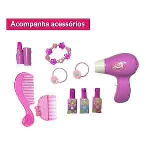 Especificações: Marca: importway Modelo: bw246 Penteadeira infantil com itens de beleza de plástico Itens incluso: secador de cabelo, esmalte, batom e pente de cabelo Estimula a imaginação para as crianças brincarem de se arrumar Indicado para crianças a partir de 3 anos Produto certificado pelo inmetro