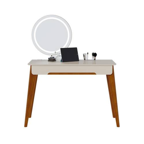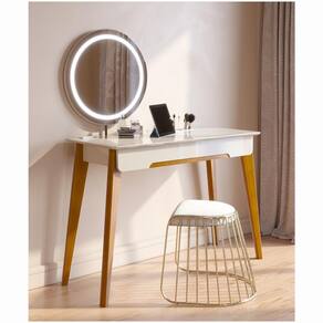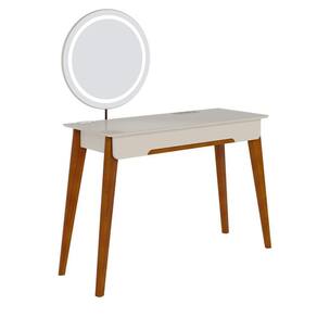Essa linda Penteadeira Jazz é mais uma criação inovadora da Imcal Móveis. Ela conta com design moderno e sofisticado agregando charme e beleza ao ambiente. Produzido em MDF e pés em Madeira Maciça, garantindo maior durabilidade ao produto. A Penteadeira acompanha Porta Objetos no tampo, ideal para organização de joias e maquiagens. Para embelezar ainda mais o produto, ela contém espelho giratório com iluminação de LED.
