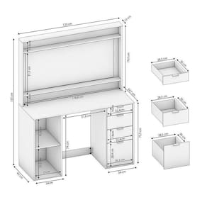 Corrediças: Metálicas | Espelhos: Possui espelho externo | Garantia: 3 meses para defeito de fabricação | Gavetas: Externas | Matéria-prima: MDP BP | Puxadores: Metálicos | Quantidade de gavetas: 4 | Sistema de montagem: Parafuso Philips e Minifix