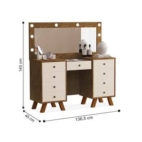 Essa Penteadeira conta com um design elegante e clássico, somando na decoração de seu quarto ou closet, com bastante espaço para organização pessoal. Conta com um largo espelho, gavetas laterais e uma gaveta central.