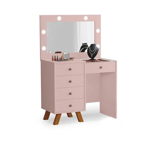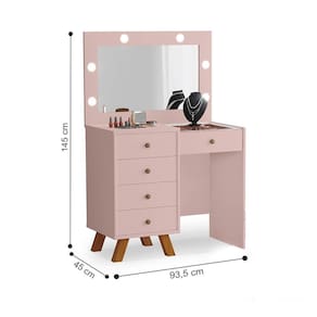 Essa Penteadeira conta com um design clássico e compacto, mas ainda assim moderno, somando na decoração de seu quarto ou closet, sendo o espaço perfeito para organização pessoal. Conta com um espelho com quadro iluminado por LED e gavetas laterais.