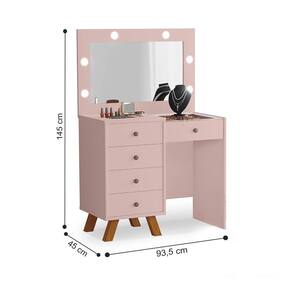 MATERIAL PRINCIPAL: mdf | DESCRIÇÃO DO TAMANHO: 145 x 93.5 x 45 cm | POSSUI ILUMINAÇÃO: sim | ALTURA DO PRODUTO (CM): 145 | COMPRIMENTO PRODUTO COM EMBALAGEM (CM): 93 | CONTEÚDO DA EMBALAGEM: 1 penteadeira | COMPRIMENTO DO PRODUTO (CM): 45 | POSSUI GAVETAS: sim, 5 | COR PREDOMINANTE: rosê | PESO DO PRODUTO (KG): 44 | PESO PRODUTO COM EMBALAGEM (KG): 44 | ALTURA DO PRODUTO COM EMBALAGEM (CM): 28.8 | LARGURA PRODUTO COM EMBALAGEM (CM): 68.5 | CUIDADOS: Limpar com pano macio e seco, não utilizar produtos abrasivos. | ESTADO DE ORIGEM: sp | POSSUI BANQUETA: não | LARGURA DO PRODUTO (CM): 93.5 | MATERIAL PARA FILTRO: mdf | CORES DO PRODUTO (FILTRO DE CORES): rosa | PRODUTO PRECISA DE MONTAGEM?: Sim, a montagem é simples mas sugerimos a contratação do serviço de montagem (para os CEPs em que o serviço está disponível) ou de algum experiente de sua preferência | PRODUTO: penteadeira | MARCA: luapa