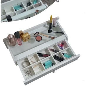 Chegou o modelo que faltava linda e delicada a penteadeira de parede nina chegou para deixar seu ambiente mais charmoso e moderno, com seu estilo little, você pode organizar de maneira econômica sua maquiagem ou joias de uma maneira eficiente, nunca foi tão prático e fácil ter um organizador de make e/ou joias lindo e moderno ocupando pouquíssimo espaço como a nina O produto possui acabamento premium e é fabricado com material de primeira qualidade 100% mdf , o que gera durabilidade, elegância e resistência, a penteadeira também possui repartições internas que podem ser removíveis, se desejar e organizar do seu jeito Possui também puxador de gaveta em acrílico estilo cristal proporcionando sofisticação a peça. Tampo de vidro resistente incluso.