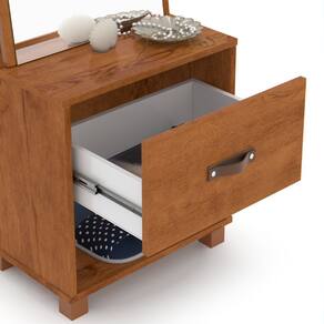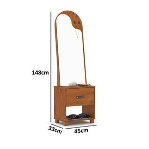 Características: Estrutura MDP Acabamento UV 01 Gaveta com Corrediças Telescópicas Ganchos Metálicos Espelho em Formato Orgânico Puxador Exclusivo em Corino Pés em Madeira Maciça Suporta 30kg distribuídos