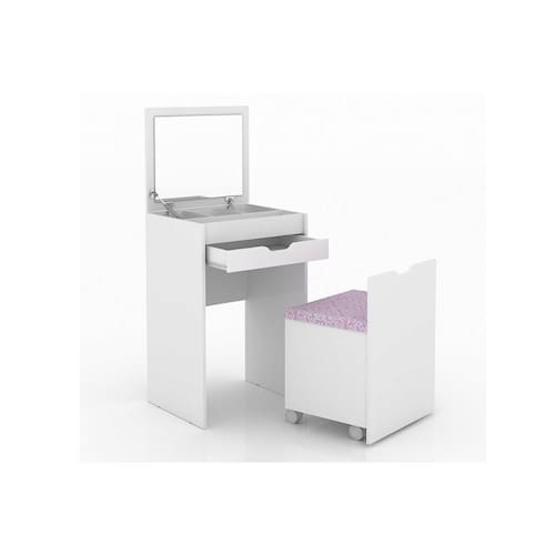 Penteadeira PE-2007 c/ 1 Gaveta e Puff Branco - Tecno Mobili