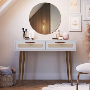 Nossa Penteadeira Retrô - Branca é ideal para você que busca uma peça multifunção e moderna. Sendo usada em quartos e até mesmo em salas como um aparador, ela leva sempre estilo e sutileza independendo do cômodo.