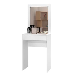 MODELO: Penteadeira Sofie MARCA: J&A COR: Branco MEDIDAS: [ A ] = 140 cm [ L ] = 60 cm [ P ] = 36 cm MATERIAL: MDP 12 / 15mm ACABAMENTO: Pintura UV (Ultravioleta) POSSUI ESPELHO: Sim, 1 MEDIDAS ESPELHO: [ A ] = 55 cm x [ L ] = 45 cm x [ P ] = 0,3 cm GAVETAS: Sim, 1 PORTAS: Não CORREDIÇAS: Metálicas PESO: 15kg GAVETA SUPORTA: 10kg DIFERENCIAL: Não ocupa muito espaço