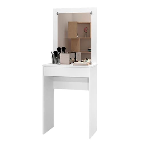 A penteadeira Sofie é ideal para você que quer organizar da melhor maneira todos os seus itens de maquiagem, joias e itens de uso pessoal, sem ocupar muito espaço, de forma prática e eficiente. Possui uma gaveta logo abaixo do tampo, e 1 espelho na parte superior. Produzida em MDP e acabamento em pintura UV e verniz brilho de alta qualidade, contribuindo para maior durabilidade e resistência do produto.
