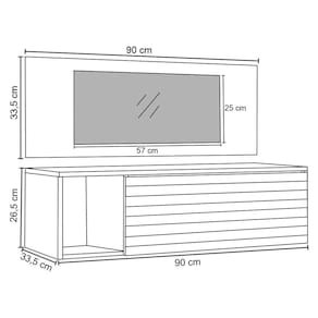 Penteadeira: 90 x 26,5 x 33,5 cm.