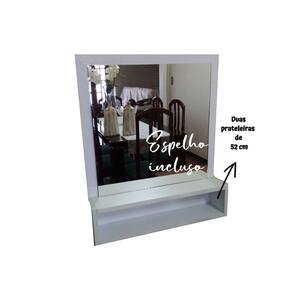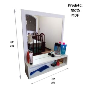 Espaço entre as prateleiras: 10 cm espelho: 40 x 45 cm ou 45 40 cm ou 40 x 40 cm largura x altura Obs: pode haver variação em questão de cm's no tamanho do espelho