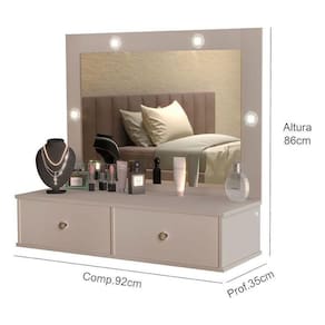 A Penteadeira Suspensa Isis fabricada pel- Luapa Móveis é perfeita para quem busca funcionalidade sem abrir mão do estilo, seu formato suspenso oferece leveza visual ao ambiente, além de permitir uma melhor utilização da área inferior, perfeita para cadeiras, puffs ou organização extra. A penteadeira possui 02 gavetas sendo 01 com nicho e corrediças telescópicas, 04 leds integrados garantindo uma iluminação perfeita para maquiagem e cuidados diários, acompanha espelho, MDP 12mm nas laterais das gavetas, restante todo 15mm e 02 réguas para fixar na parede. A Penteadeira Suspensa Isis é perfeita para valorizar seus momentos de autocuidado com muito estilo, aproveite!