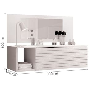 Penteadeira Joy Peternella, compacta, versátil e estilosa. Produzida em MDP/MDF de 15 mm, pintura UV, conta com 01 nicho, 01 gaveta com 03 repartições, painel com espelho. Penteadeira Joy Peternella, te possibilita armazenar os mais distintos objetos. Este móvel chegará em sua casa separado em 01 volume.