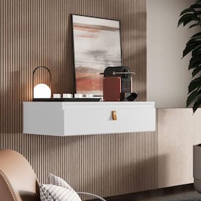 Não perca mais tempo! Compre nossa Escrivaninha Suspensa com Puxador de Couro e 1 Gaveta e transforme seu quarto em um refúgio aconchegante e elegante!