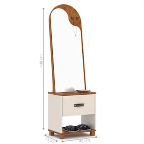 Penteadeira Toucador Miami Off Freijo Se você está em busca de um móvel que alie praticidade, elegância e charme, a Penteadeira com Espelho 1 Gaveta Branco é a escolha perfeita para você. Dimensões do produto montado: Altura: 148 cm Largura: 45 cm Profundidade: 33 cm Características: - Material MDP/MDF - Cor freijó/off white - Gaveta - Nicho - Pés - Espelho Itens Incluso: 01 Penteadeira. Kit completo para montagem. Manual de montagem. Observações: - Não nos responsabilizamos pela montagem do produto. - Sistema de Montagem: Parafusos, Cavilhas e Tampos. - É recomendado que a montagem seja feita por um profissional qualificado. - As imagens indicam uma sugestão de uso e são apenas ilustrativas, os objetos decorativos não estão inclusos. - Ao iniciar a montagem, forre o chão com o papelão das embalagens para proteger as peças de arranhões. Instruções e Cuidados: Limpar com pano seco, manter em lugar livre de umidade, ao abrigo de exposição direta ao sol. LARGURA DO PRODUTO (CM): 45 | ALTURA DO PRODUTO COM EMBALAGEM (CM): 8 | LARGURA PRODUTO COM EMBALAGEM (CM): 43 | PESO PRODUTO COM EMBALAGEM (KG): 14 | GARANTIA DO FABRICANTE: 3 | INSTRUÃ?Ã-ES/CUIDADOS: Limpar com pano macio e seco, nÃo utilizar produtos abrasivos. | CORES DO PRODUTO (FILTRO DE CORES): FREIJO/OFF WHITE | ALTURA DO PRODUTO (CM): 148 | ESTADO DE ORIGEM: SP | PRODUTO PRECISA DE MONTAGEM?: Sim, a montagem à facil mas sugerimos a contrataÃÃo de um montador profissional para a montagem do produto. NÃo nos responsabilizamos por danos causados no ato da montagem. | COMPRIMENTO PRODUTO COM EMBALAGEM (CM): 101 | PESO DO PRODUTO (KG): 14 | QUANTIDADES DE CAIXAS DE EMBALAGEM: 1 | COMPRIMENTO DO PRODUTO (CM): 33 | DESCRIÃ?Ã?O DO TAMANHO: 148X45X33 | MATERIAL PRINCIPAL: MDP/MDF | COR PREDOMINANTE: FREIJO/OFF WHITE | PRODUTO: PENTEADEIRA | MARCA: CASAH | QUANTIDADE DE GAVETAS: 1 | QUANTIDADE DE NICHOS: 1 | POSSUI ESPELHO: SIM | QUANTIDADE DE PRATELEIRAS: 1